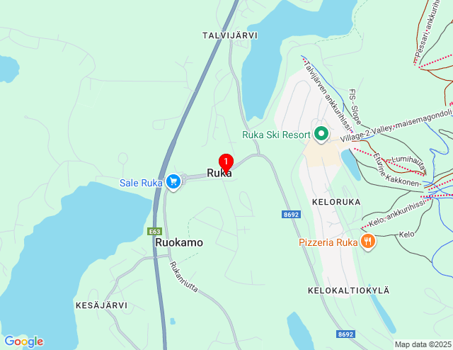 Ruka is a ski resort and village near [wiki=55aefbd2ae6d10e2810157440237c235]Kuusamo[/wiki] in [wiki=e4af47a9386b03c0767787b76ca8d6e0]Oulu[/wiki] province of [wiki=6f781c6559a0c605da918096bdb69edf]Finland[/wiki].